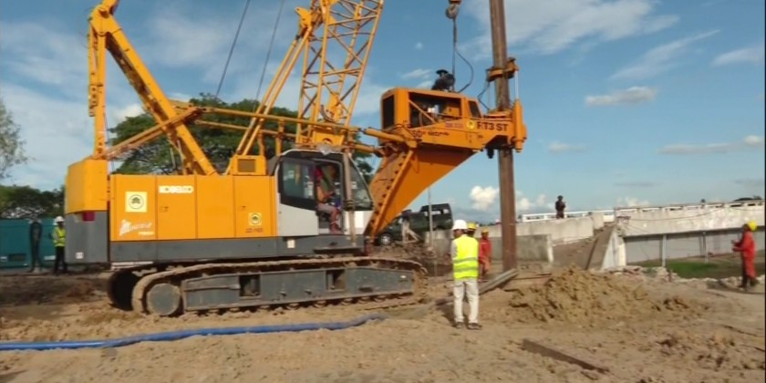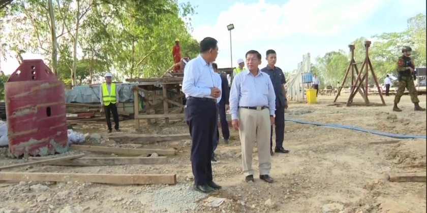 Subsequently, the SSPC Chairman and officials continued their journey along the Yangon-Mandalay Expressway. They inspected the ongoing reconstruction of the Swa Chaung Bridge. The Chairman instructed that bridge construction work should be carried out systematically, and that efforts should be made for bank protection along the Swa Chaung and to improve the waterway, along with other necessary measures.