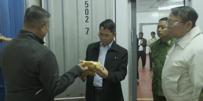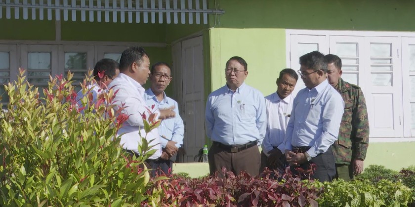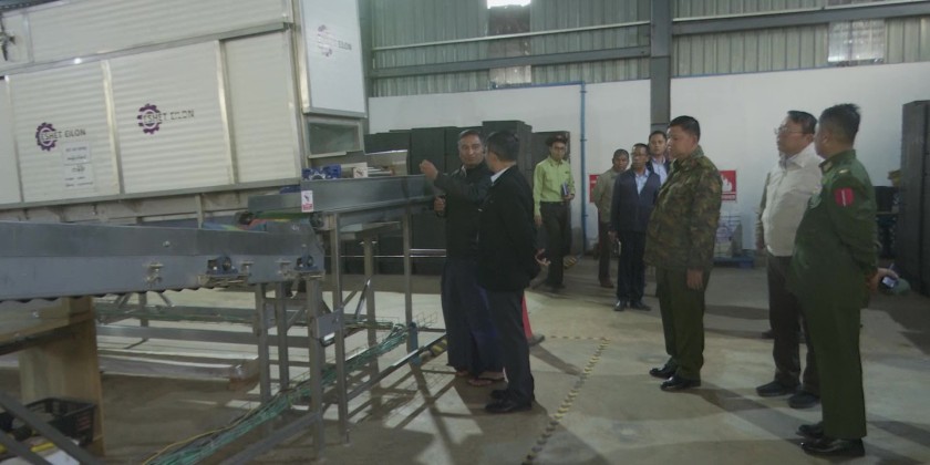 Afterwards, the Union Minister visited the mango sorting and packaging operations of Unique Lawksawk Mango Public Co., Ltd., in Kya-in Village, Magyikone Village Tract, Yatsauk Township, to observe and encourage their activities.