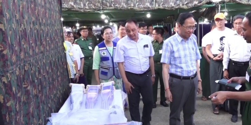 Later, the Union Minister and officials visited Paung Laung Temporary Hospital, where joint medical teams including Myanmar Armed Forces Medical Corps, Ministry of Health teams, Bhutanese medical teams, and Rapid Response Teams, are providing healthcare services.