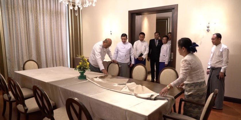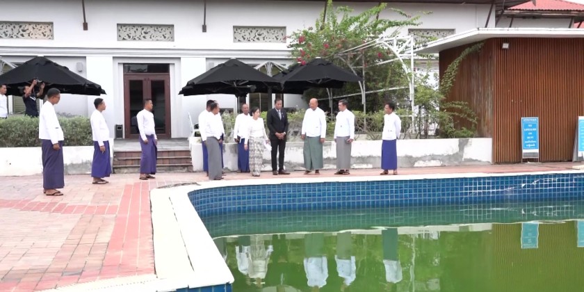 Union Minister for the Ministry of Sports and Youth Affairs and the Ministry of Hotels and Tourism Jeng Phang Naw Taung inspected hotels within the State Guest House compound in Dekkhinathiri Township, Nay Pyi Taw in the morning of August 6th.