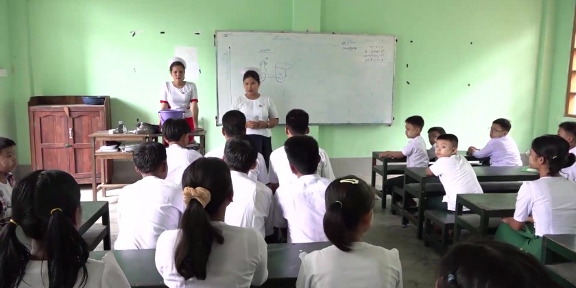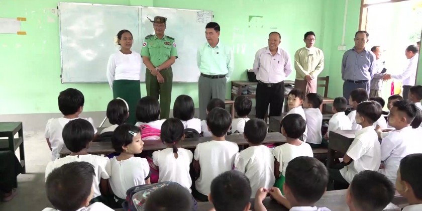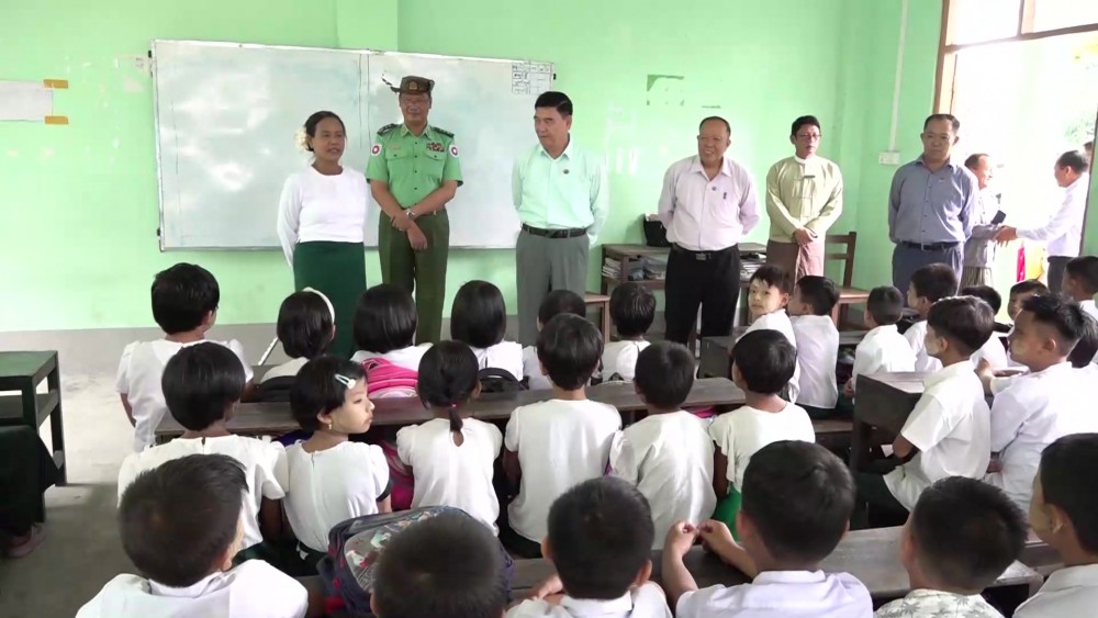 Rakhine State Chief Minister U Htein Lin together with the State Government Ministers and departmental officials took an inspection tour to the Sub Basic Education High School (Ma-Gyi-Myaing), gave encouragement to the students who are studying peacefully, visited Thet-Kal-Pyin station hospital, gave words of comfort to the patients, provided assistance and watched the conducting of health talk.