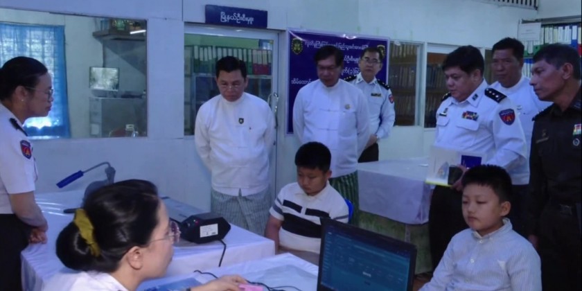 Subsequently, the Union Minister and the Region Chief Minister observed the processes. They saw staff examining local residents according to procedures under Phase (3) of the Pan Khin Project to provide household population lists and NRCs. The services were being carried out step-by-step through a One-Stop Service system. They also observed the status of implementing the e-ID system, where biometric and biographic data of those who had received their NRCs were being captured to issue a Unique ID number concurrently.