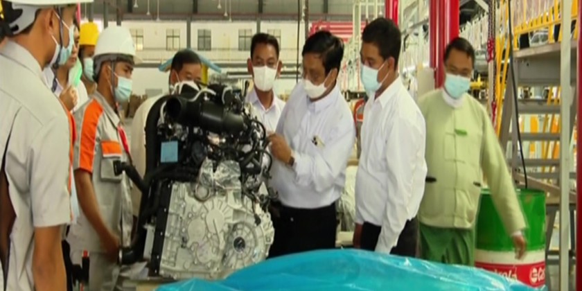 In the morning on 30th January, the union minister visited Go Excellent (Myanmar) Co., Ltd. in Shwe Lin Ban Industrial Zone, Hlaingthaya Township and Myanmar Arr Thit Man Motor Co., Ltd. in TharDuKan Industrial Zone in ShwePyiTha Township and viewed the condition of motor vehicle assembling process, testing the fitness of the vehicles with the supporting machines and equipments, test driving of newly assembled motor vehicles on the roads with various conditions for the safety of the motor vehicle consumers.