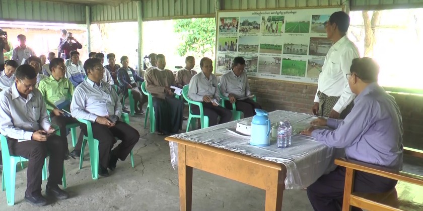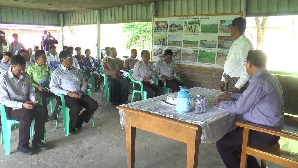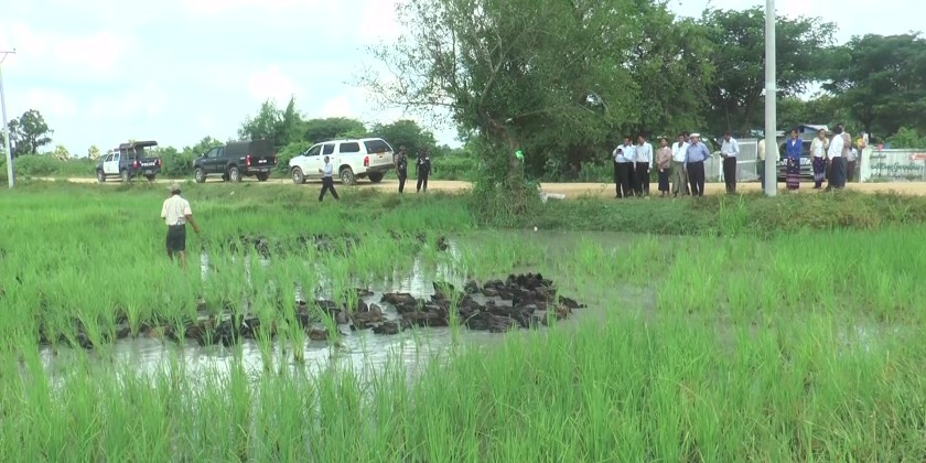 Deputy Minister for Agriculture, Livestock and Irrigation Dr. Aung Gyi inspected the integrated farm of farmer U Maung Thin in Nyaunglunt Village, Tatkone Township, Nay Pyi Taw, on the afternoon of September 28. He observed and encouraged the farming activities, which include raising dairy cattle, local cattle, goats, and layer ducks, fish farming, and the cultivation of Aung Naing Toe paddy strain on 81 acres. He also provided advice and held discussions with local farmers and livestock breeders on necessary practices to follow in their cultivation and livestock operations.