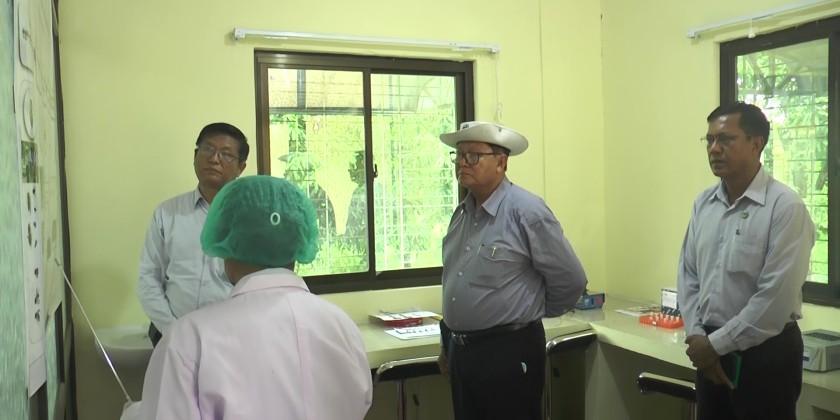 In the afternoon, at the Livestock Breeding Research Station (Shwemyo) under the Department of Livestock Research in Shwemyo Village Tract, Tatkone Township, he inspected the ongoing efforts to register the genetic data of Myanmar bee species in the World GenBank and to register beeswax and royal jelly under Myanmar's name. He also reviewed the progress in branding and exporting Bee Products of Myanmar, such as Myanmar honey and other bee-derived products including bee pollen, propolis, and bee venom, to international markets. He discussed and instructed the responsible departmental officials to collaborate with beekeeping farmers and apiculture entrepreneurs on applied research and market research activities.