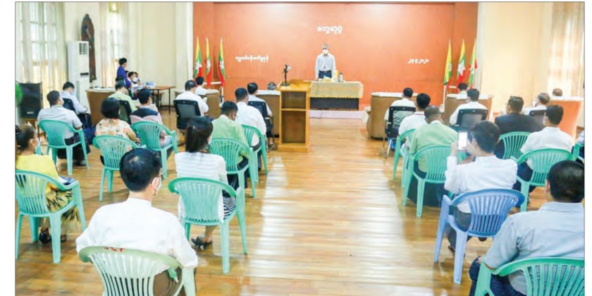 The chairman of the Shwelinpan Industrial Zone Management Committee, General Secretary, Chairmen and Vice-Chairmen of the Industrial Zones in Yangon Region and the investors discussed the current activities of the industries, matters regarding banking and finance, reoperation of the burned and damaged factories, shipping, insurance, tax exemption, loans and the standards of the industries.