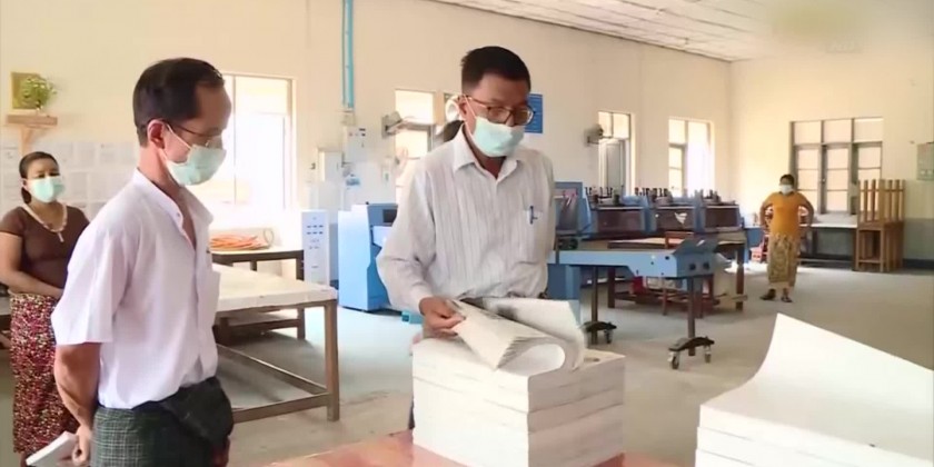 On 5 April morning, the deputy minister arrived at the Upper Myanmar Printing-House of the Printing and Publishing Department and inspected preparing to print school textbooks and gave the instructions to supervise to be good quality printing while meeting with the in-charge and staff of the printing house.