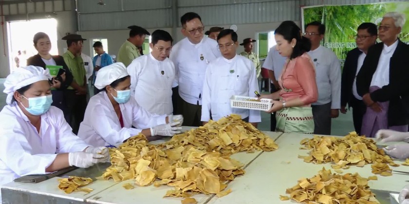 Following this, the Union Minister and Nay Pyi Taw Council Chairman visited the Nay Pyi Taw Industrial Zone in Dakkhinathiri Township and observed the production processes at the Dry Bamboo Shoot Factory, operated by the Narindara Company Limited.