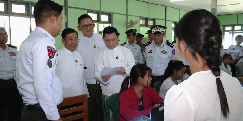 There, staff from the Lewe Township Staff Officer’s Office were seen issuing Citizenship Scrutiny Cards (CSC) and e-ID cards with Biographic and Biometric data, along with a Unique ID number containing 10 digits. This work was carried out as part of the third phase of the Pan-Khin project under a one-stop service system, where citizens' data was processed.
