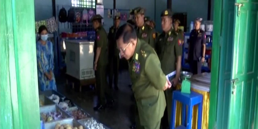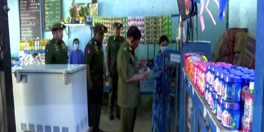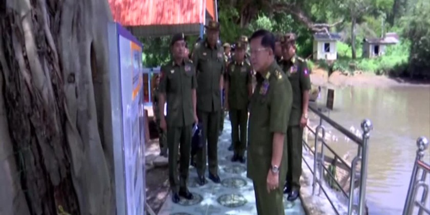 Later, the Senior General and party cordially greeted training officer instructors and officer trainees. They then observed selling of food stuff and personal goods with reasonal prices at the battalion sale shops. After that, the Senior General and party inspected dredging silts from the lake in the local battalion and called for renovation of lake edgings and silting before the rains and gave necessary instructions.