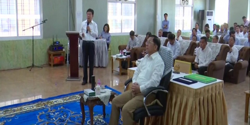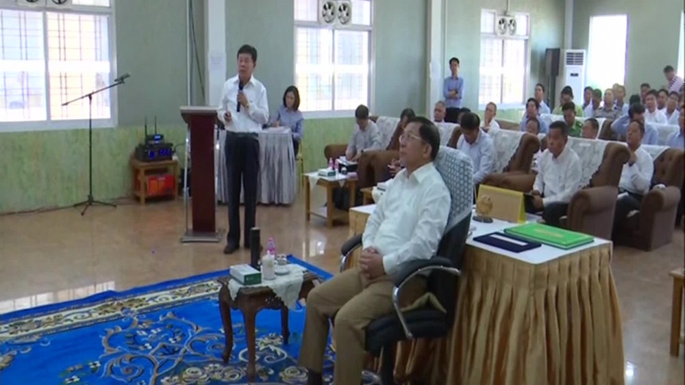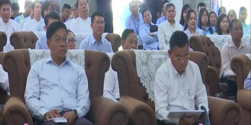 At the clarification hall, chairman of Global Earth Agro & Aqua Industry Public Co., Ltd U Htay Myint clarified the work implementations to the Chairman of the State Administration Council Prime Minister and party. He explained the launching of the project and implementations of the fish breeding basic industrial business, status of implementing with the visions in line with the objectives laid down by the state, the work processes included in the agricultural, livestock breeding based industrial business and the implementation under the work processes, Stages of implementations of the Smart Hatchery & Nursery, experimental works of Smart Grow Out Farm and results, records of initiating construction works, work process of constructing Feed Factory in line with the international standards, under the implementation of Seafood Processing & Cold Storage Plant, allocating the staff housing, office buildings and road and bridges, establishing Biomass Power Plant and reliance on own generated electricity etc.