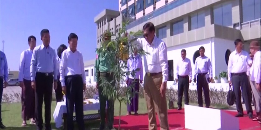 The country’s prosperity and food security are the two national objectives. The SAC Chairman Prime Minister added the implementation for the human resource development including high education and vocational education and and appreciated the project and advised to implement such project in all regions and states and the state will provide necessary assistance in line with the procedure etc. Then, the SAC Chairman Prime Minister signed on the guest book. Afterward, the SAC Chairman Prime Minister planted a Gantgaw tree and the SAC joint secretary, SAC member, commander in chief (Navy) and Commander in Chief (Air) also planted the memorable trees.