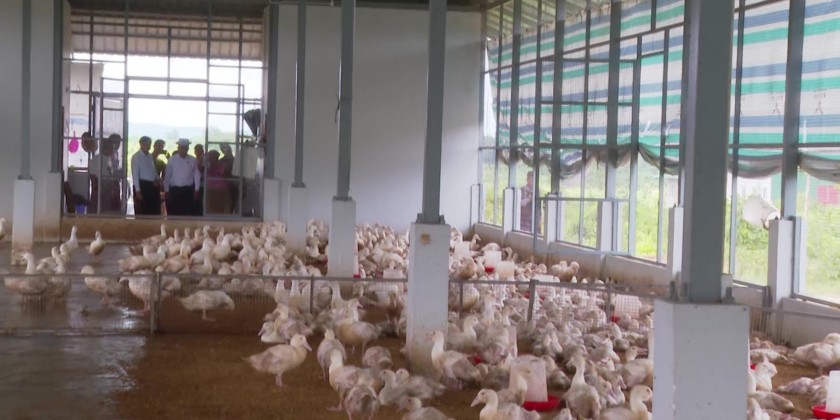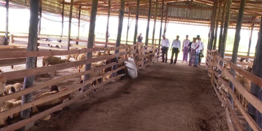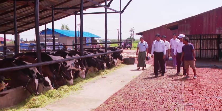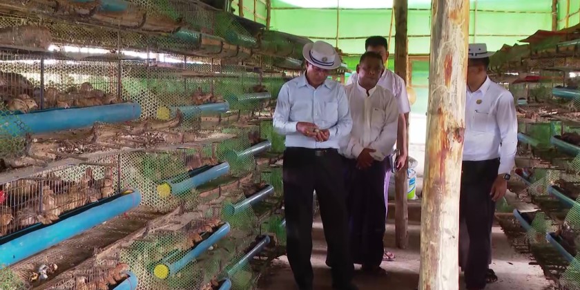 First, Chief Minister and officials toured the Taikkyi Livestock Zone, inspecting areas designated for chicken farm construction, the breeding of local cattle, the planting of windbreak trees, dairy cow farming, the cultivation of feed crops, and the ongoing work on water storage ponds. They also reviewed the conditions of laying hens, broiler chickens, goats, and sheep being raised. During the inspection, the Chief Minister coordinated and integrated the presentations made by the entrepreneurs with relevant departmental heads and gave necessary instructions.
