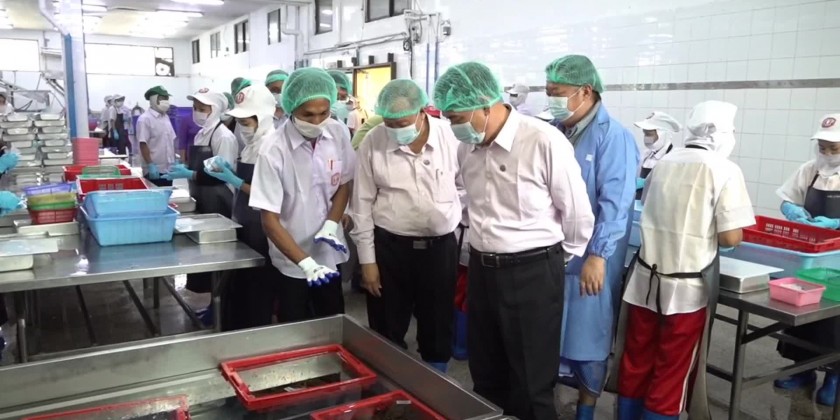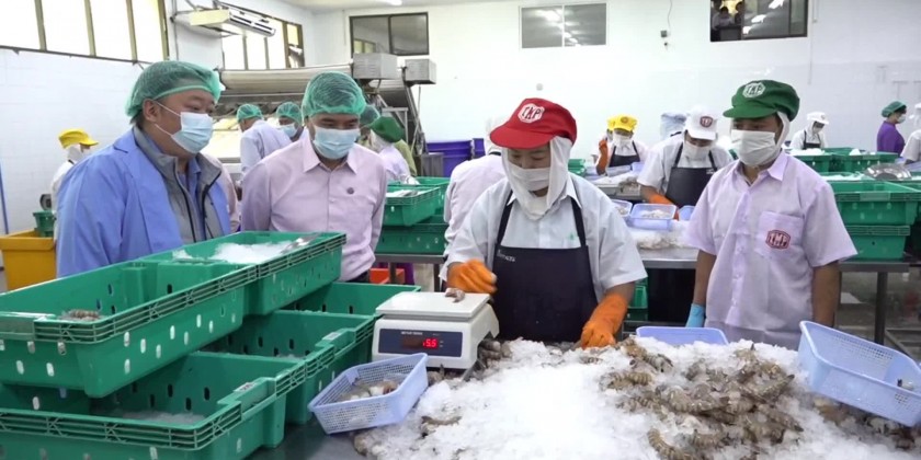 First, the Chief Minister and party visited TMP cold-storage factory in DwarawadyMyothit of Thandwe and factory owner clarified the processing marine finished products, exporting process and plans of extending livestock industry.