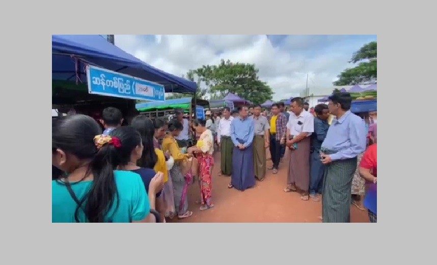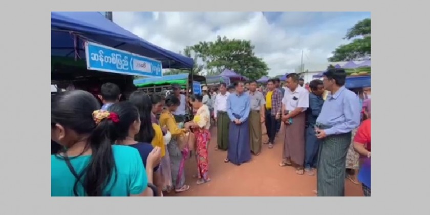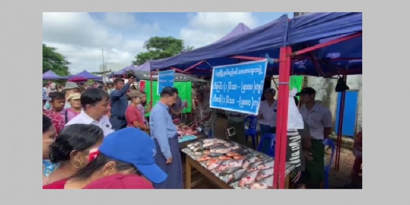 The Bago Region Chief Minister U My Swe Win observed the running of shops selling by the farmers and livestock breeders directly under the organizing of Bago Region Government in the Bago Myoma Market in the morning on 3rd September.