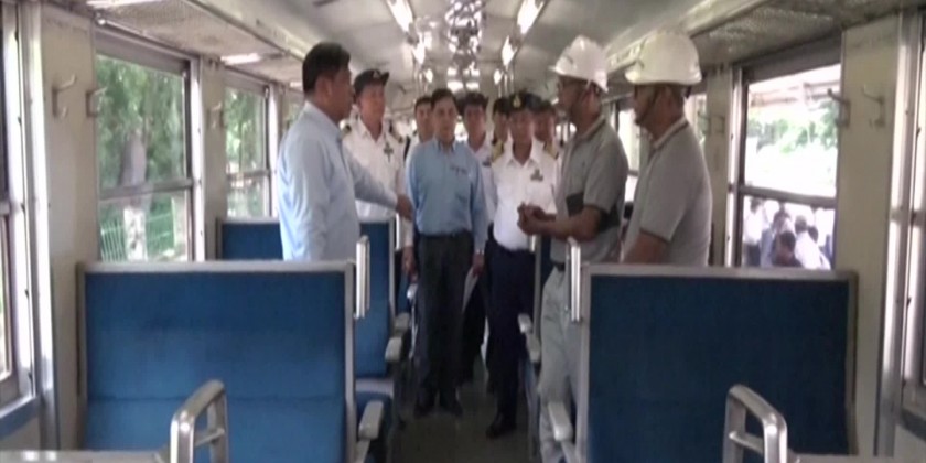Afterward, the union minister and party arrived at the Rail Bus Engine-RBE workshop in the compound of Yangon Railway Station, inspected the maintenance works of RBE coaches received from West Corporation and gave necessary instructions in responding to the clarifications of Myanmar Railway General Manager (Mechanical/Electric) and In-Charge of RBE Workshop.