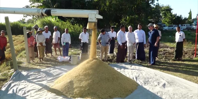 Union Minister for Cooperatives and Rural Development U Hla Moe inspected harvesting one acre model farm of Hsin-Thukha monsoon paddy (120 days) owned by farmer Daw Thet which is experimental plantation using Russian natural fertilizer and cooperated with Russian Federation Roscongress Investments Fund in the afternoon on Thursday.