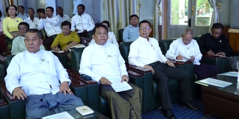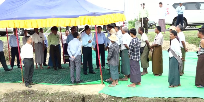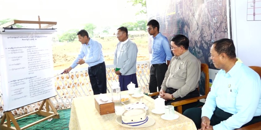 From there, the Union Minister, the Regional Chief Minister U Tint Lwin, and officials attended a ceremony at the Magway City Hall for providing agricultural inputs, connecting with farming services cooperatives for ploughing, and handing over funds for the Village Development Project (VDP).