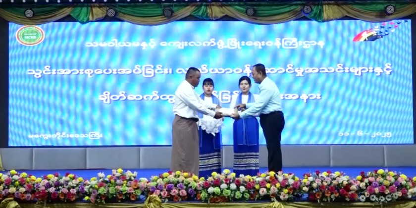 They then attended the closing ceremony for a basic motorcycle maintenance technology course in Lyaung Taw Oo village, Magway Township, where the Union Minister delivered a speech of training completion. Subsequently, the Union Minister and party went to the office of the Department of Small-Scale Industries in Magway Region.