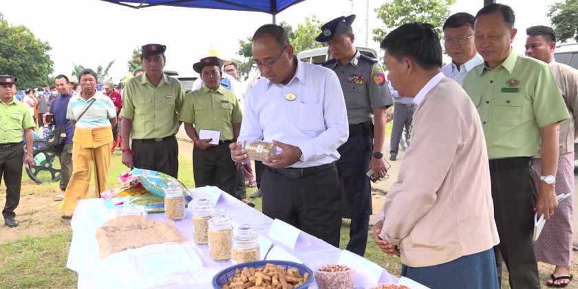 They continued by visiting a display organized by the Agriculture Department showcasing various seeds and oil crops such as groundnuts and sesame, with officials providing explanations.