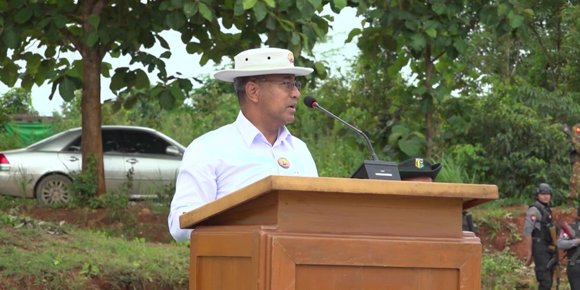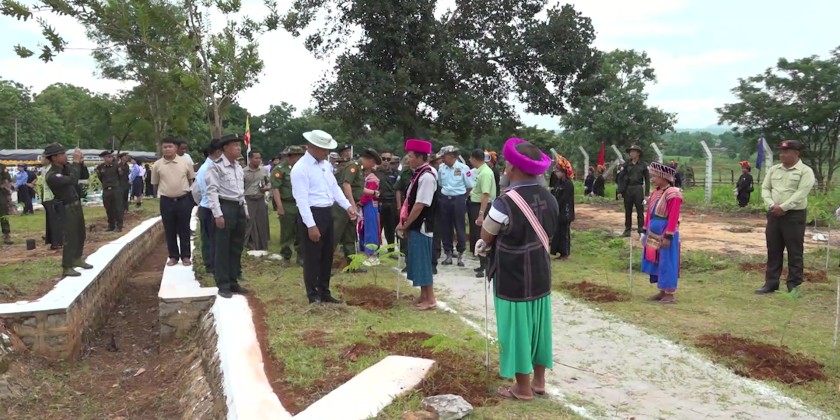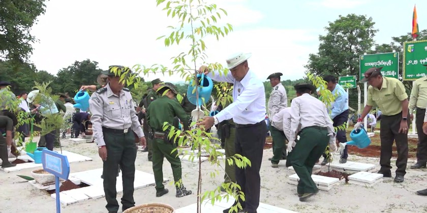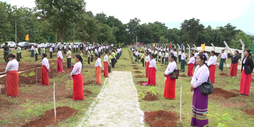 Next, the Chief Minister and officials attended the 2025 monsoon season mass tree-planting ceremony in Namsang Township. At the ceremony, Chief Minister U Aung Aung delivered a speech and handed over saplings to the relevant officials.