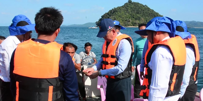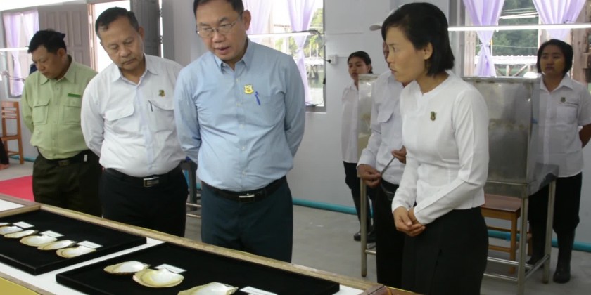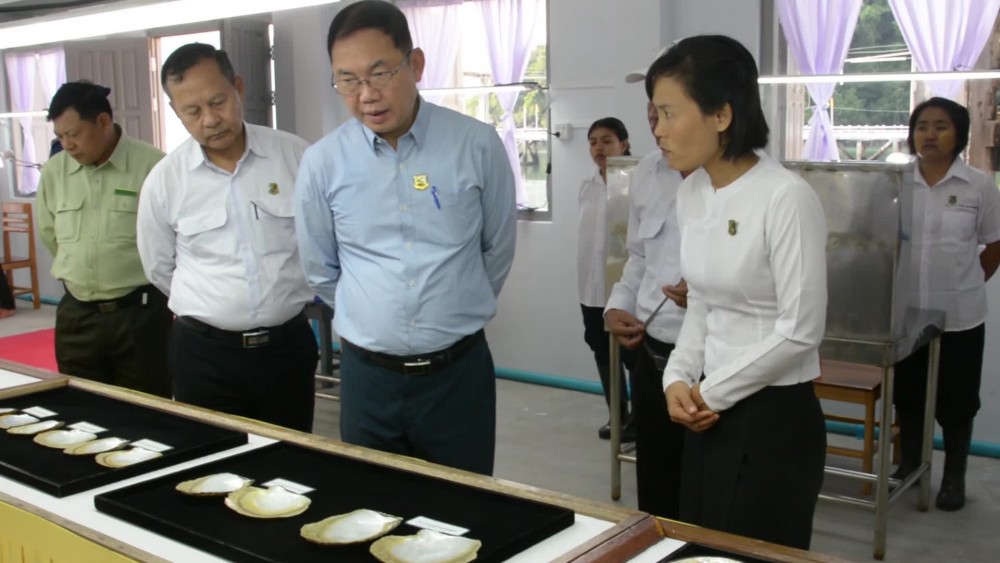 Later, the Union Minister visited Bearpearl Myanmar Company in Shwe Island in KawtThoung Township and inspected the oyster farming with breeding and implanting shell bead into the tissue of a pearl oyster and instructed necessary instruction in responding to the reports of the responsible officials.