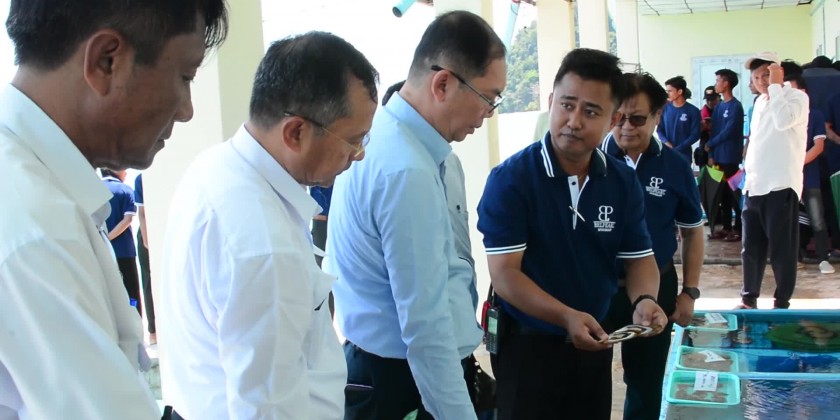 In the afternoon, the Union Minister visited Adman Pearl Company in St. Luke Island, heard the clarifications of the responsible persons and gave necessary instruction. Then, the Union Minister viewed round the oyster culture in long-line culture method at sea water.