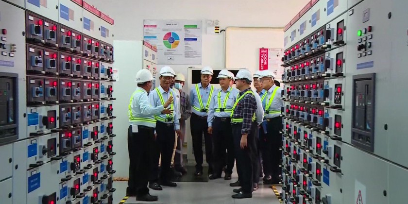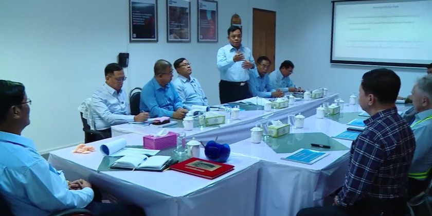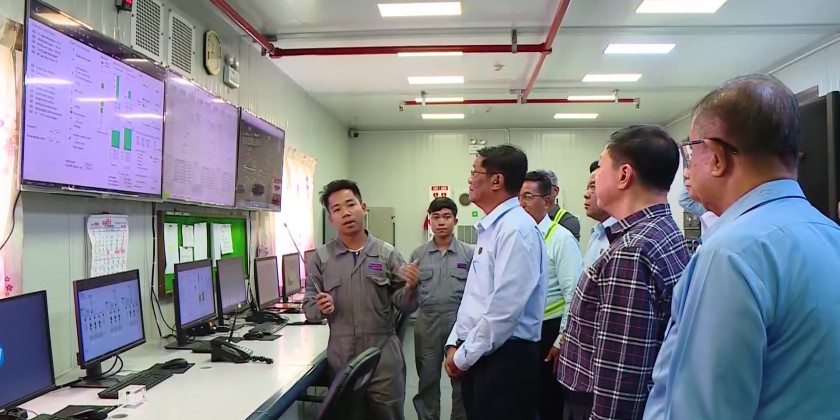 At the briefing hall of Kyaukse gas turbine Electric Power Plant, the Union Minister and party heard the report by the managing Director of the Electric Power Generation Enterprise Dr. Win Myint, gave necessary instructions and inspected the status of Power generation and transmission in the Power control room.