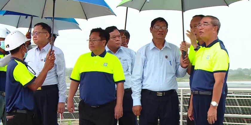 At the briefing hall of Thabyaywa 30-Megawatt Solar Power Plant, the Union Minister heard the clarification on the data of Power plant, work undertaking on the civil engineering, solar panel installation using Tracking System and the Construction works of powerlines for the Power transmission to the Thabyaywa Power substation.