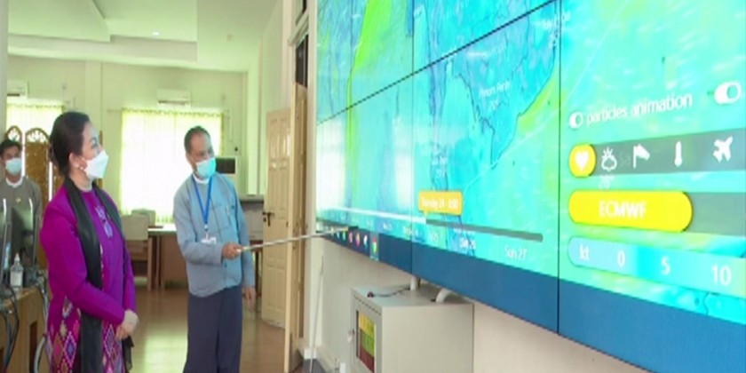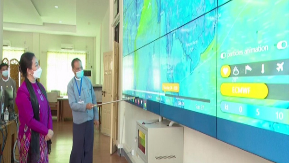 During the inspection, the temporary in-charge of the center head of department U Win Htein Kyaw clarified the released of public notice and notifications concerning with the low pressure 91 B Invest by the Department of Meteorology and Hydrology and the conditions to intensify into a Cyclonic Storm according to the findings of International Weather Forecast Websites.