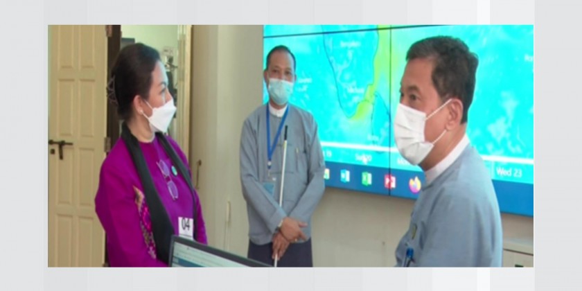 The Union Minister for Social Welfare, Relief and Resettlement Dr. Thet Thet Khine together with the officials concerned inspected the monitoring tasks at the Emergency Operation Center regarding currently forming low pressure 91 B Invest on the Bay of Bengal in the morning on 18th March.