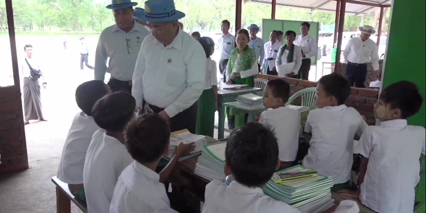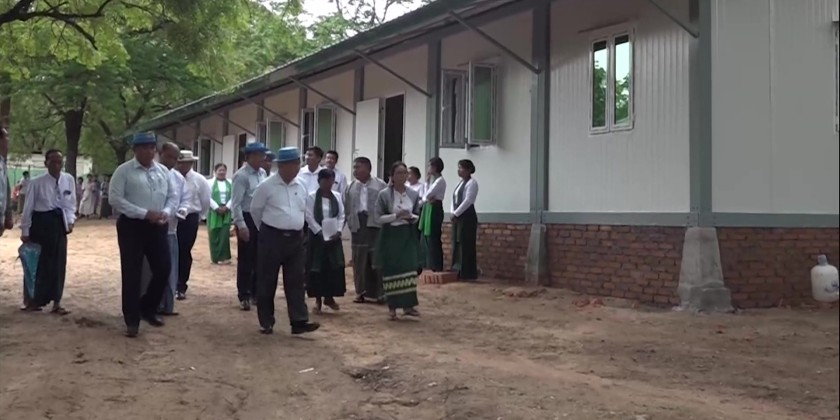 Union Minister for Education Dr. Nyunt Pe visited basic education schools in Sagaing Region and Mandalay Region on May 29, to observe and encourage students and parents participating in the school enrollment process. He also inspected temporary classrooms and school repair and construction works being carried out ahead of the school reopening, providing necessary support where needed.