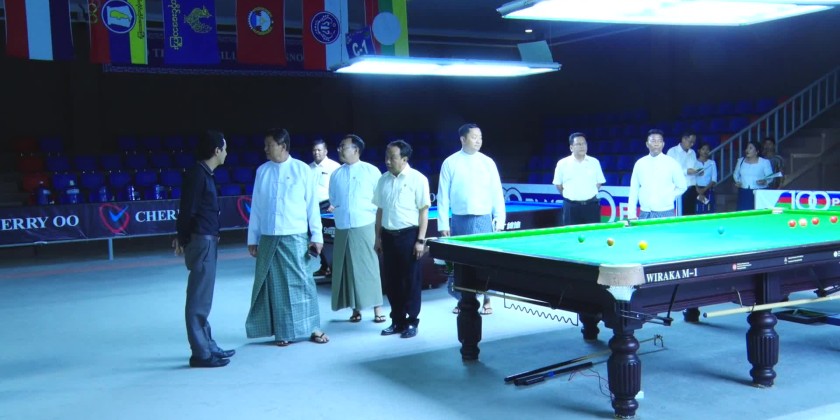 First, the Union Minister inspected the preparations for the Sepak Takraw Court at Wunna Theikdi Sports Complex (A), setting up of background billboards and vinyl signs, completion of installing Regions and States flags, completion of tile flooring at Wunna Theikdi Stadium (B) and he instructed the responsible persons on necessary adjustments.