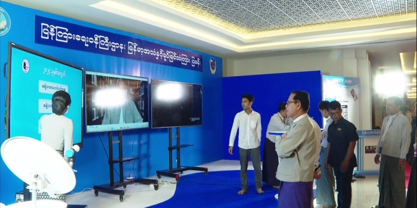 First, the Union Minister toured the exhibition booths being prepared by Myanmar Radio and Television, the Department of Information and Public Relations, and the Printing and Publishing Department under the Ministry of Information.