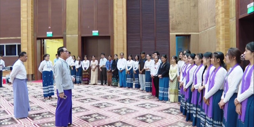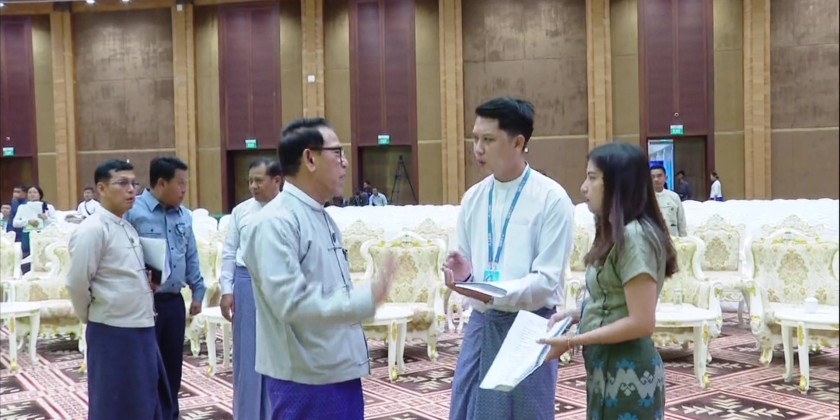 Based on the explanations from the responsible officials, he provided necessary instructions and coordinated the arrangements. Subsequently, the Union Minister observed and encouraged the rehearsals for the award ceremony, provided necessary instructions to the responsible officials, coordinated the arrangements, and warmly met and greeted the staff who will be involved in various sectors of the event. It is learned that the award ceremony for the 2024 National Literary Lifetime Achievement Award, National Literary Award, and Sarpay Beikman Manuscript Award will be held on November 20, 2025.