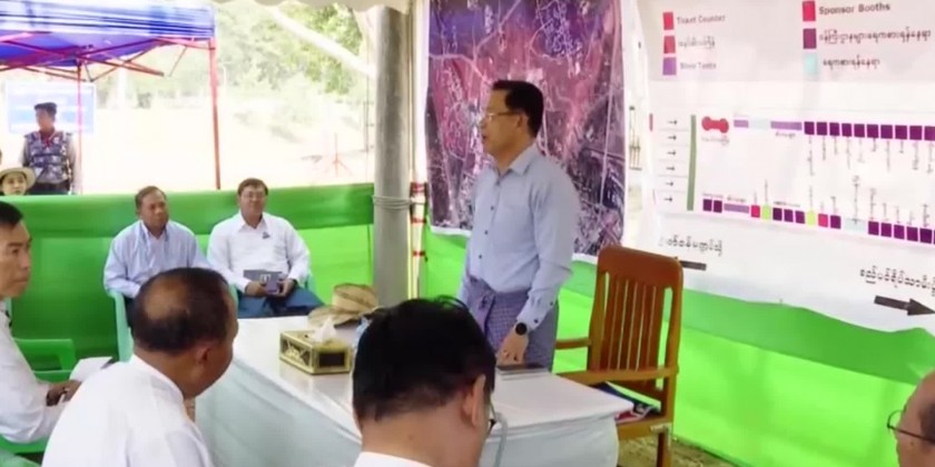 The Chairman of Nay Pyi Taw Walking Thingyan organizing committee Union Minister for Information U Maung Maung Ohn accompanied by the senior officials inspected preparation works for organizing Nay Pyi Taw Walking Thingyan in the morning on 10 April. First, the Union Minister met with the stakeholders which are involving in the related sectors to hold the Nay Pyi Taw Walking Thingyan safely and grandly including the ministries and Brilliant Aura Co., Ltd at the walking thingyan supervising pandal.