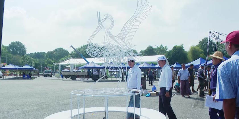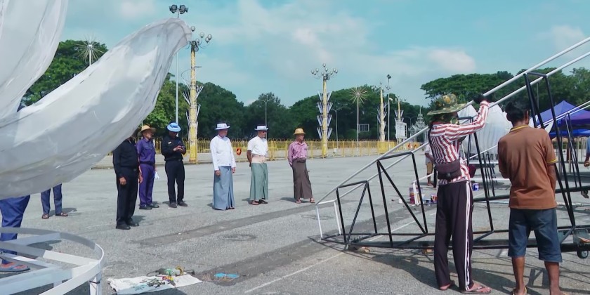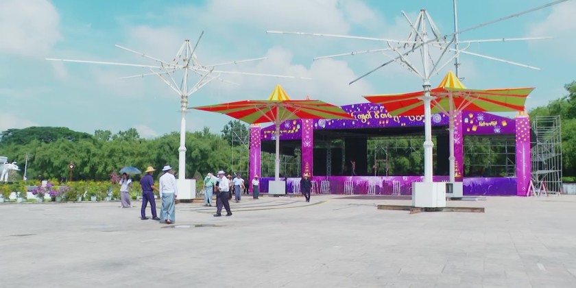 On the morning of September 30, Yangon Region Chief Minister U Soe Thein and members of the Region Government inspected the preparations for the Thadingyut Festival Sale and Music Performance Event, where MSME products and regional goods will be sold, at the People's Square in Yangon.