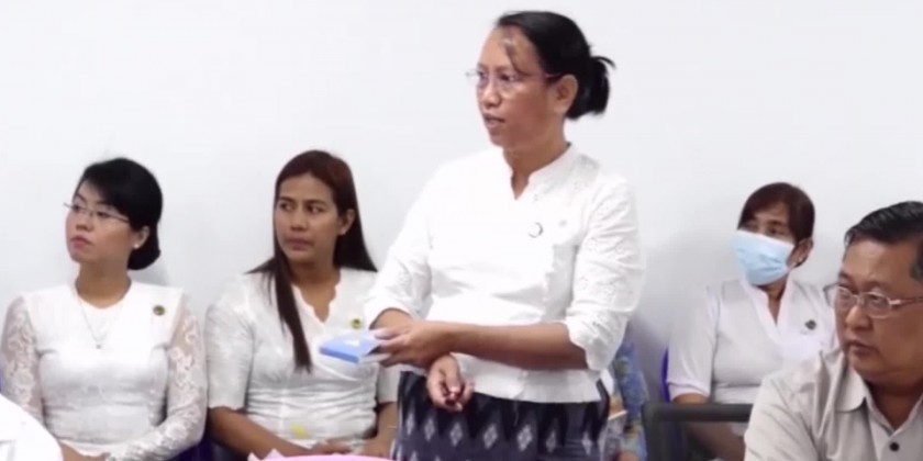 Officials explained construction of the 7-storey building of the Yangon General Hospital in sections such as civil section, clean/sanitation section, and power supply section, progress of tasks and future plans, and Director General of the Department of Buildings U Myo Myint, made a supplementary presentation.
