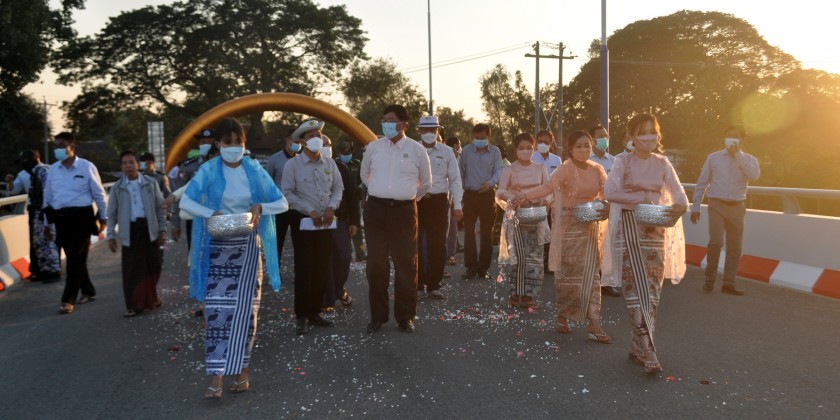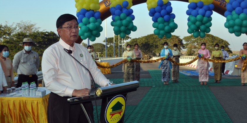 The Magway Region Chief Minister U Tint Lwin together with the region ministers, region district and township level officials arrived at AungLan Township at 1 p.m. on 30 January, inspected Ayeyawady River Crossing Electricity Power Project, attended opening and handing over ceremony of Oxygen plant and opening ceremony of KyayNiChaung Bridge.