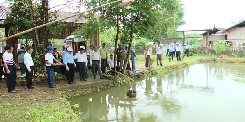 The Chief Minister and party also inspected fish farm in Pan-Hlaing Ward, heard the reports of the responsible officials, coordinated to grant 6 million Kyats  and inspected fish ponds.