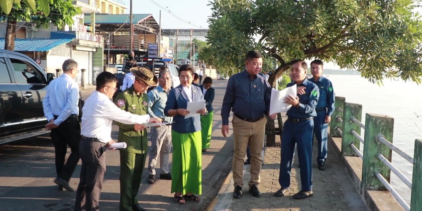 Subsequently, the State Chief Minister and officials inspected the land area along the Mawlamyine Strand Road night market, where a space for public recreation facing the river will be developed.
