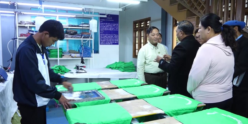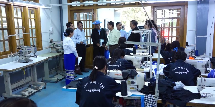 After that, the Union Minister and officials visited the Royal Tgi Garment and logo printing service in Aye Thar Yar Town, Taunggyi Township. They inspected the factory’s operations, and the responsible officials provided a detailed report on the current status of the business operation.