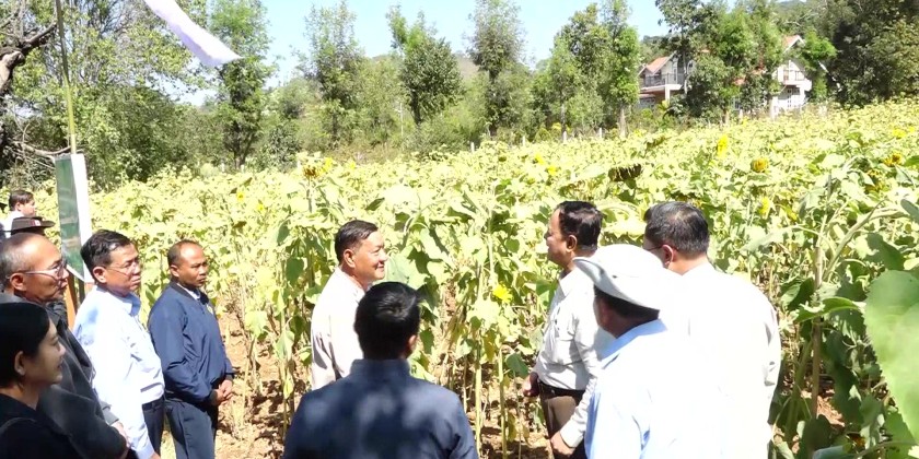 He then inspected the winter sunflower cultivation fields. The Union Minister and party, then, proceeded to Pant Pone Village in Taunggyi Township, which is being developed as a model modern village.