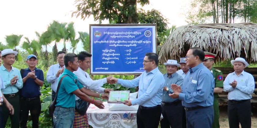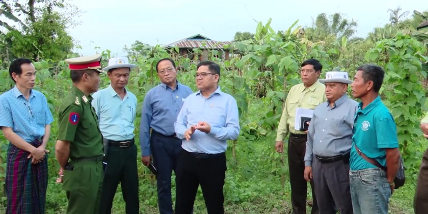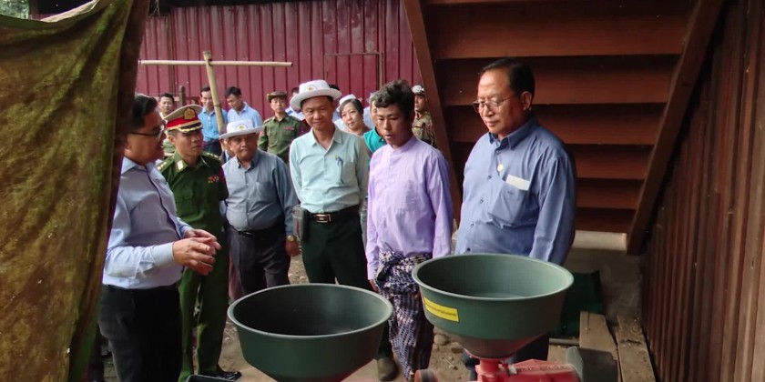 After that, the Chief Minister together with State Minister for natural resources and departmental officials arrived at Puta-O Township by air in the evening and proceeded to Pu Taung Village accompanied by the Interim commander of stationed Tactical Operations Command, members of District/Township Administration Bodies and departmental officials.In the Pu Taung Village, the Chief Minister looked the breeding of 80 local pigs by local farmer group as a Village project with 20 million Kyats from Country Economic Promotion Fund second revolving year, inspected vegetable plantation in the residential compounds and work implementation with small scale rice mills and provided veterinary medicines and sacks of supplemental mixed animal feeds, it’s reported.