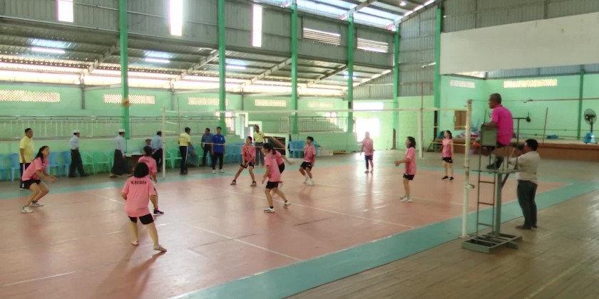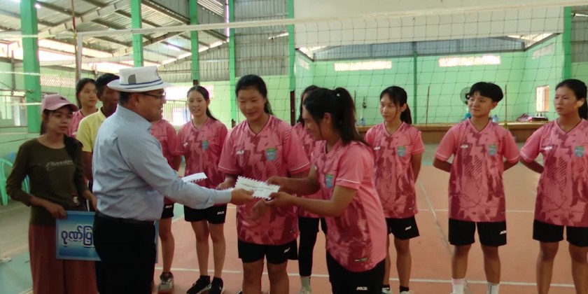 First, in the afternoon, the Chief Minister together with the Chief Justice of State High Court, State Ministers and departmental officials viewed the camping training of State selection women Volleyball Team who will participated in 2024 Regions and States U-21 Volleyball competition and the Chief Minister provided cash assistance for the team including two selection athletes from Khaunglanphuu Region of Puta-O District.