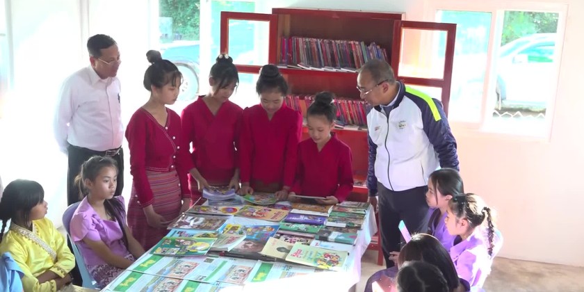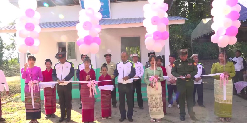 After the inspection, they attended the opening ceremony of the new Philanthropic library building in the Tarkwal Village of Kengtung Township, which was officially inaugurated by cutting the ribbon.Then, the Chief Minister presented documents on new library building and certificate of honor to the responsible officials of the library and toured the library.