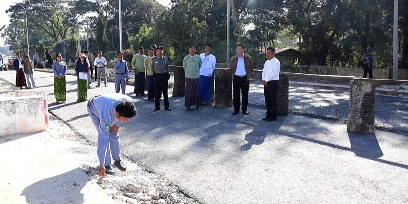 The Acting Executive Officer of the State Development Committee, U Saw Nay Kha Lee and other relevant officials provided explanations about the ongoing work.Following this, they inspected the ongoing road construction works and instructed the relevant authorities to ensure that the work meets the required standards, such as quality assurance, timely completion, safety on the work site, and smooth travel for the public during the project.