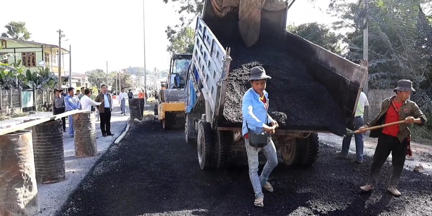 The Kayah State Government is actively implementing regional development and reconstruction works at full swing. State Chief Minister U ZawMyo Tin, along with the State Government members and relevant officials, visited the site where the Asphalt Concrete (AC) paving works on Butar Road in Loikaw City and the water reduction efforts in the Daw Noe Koo and NamtKut wards, where there were remaining floodwaters.