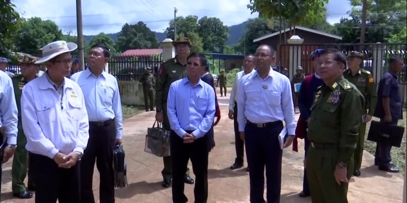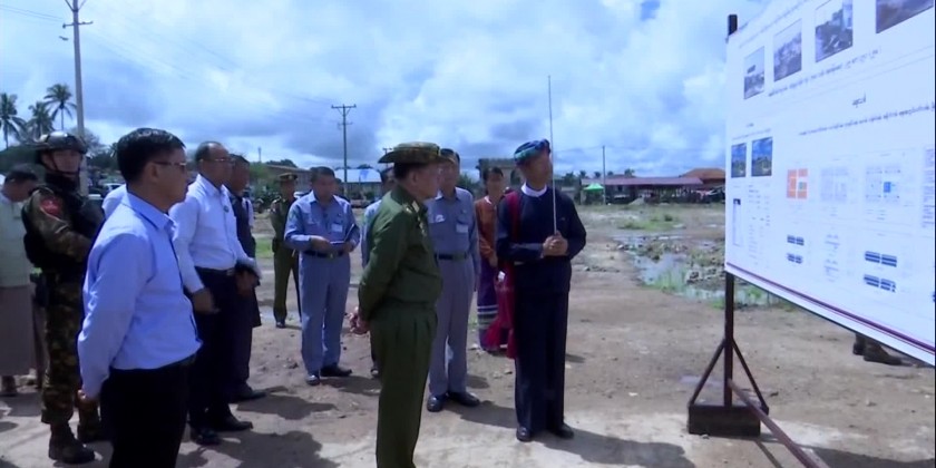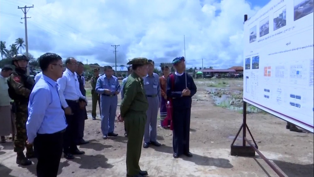 Chairman of State Administration Council Prime Minister Senior General Min Aung Hlaing accompanied by members of entourage, Shan State Chief Minister Commander of East Command and official, in the morning on September 4, inspected the rehabilitation works carrying out in Hsi-Hseng Township which was damaged and destroyed by the terror attacks of PNLO, KNDF and PDF terrorist insurgent groups.