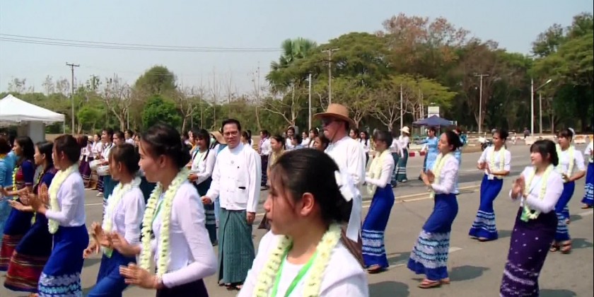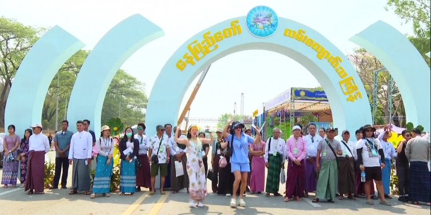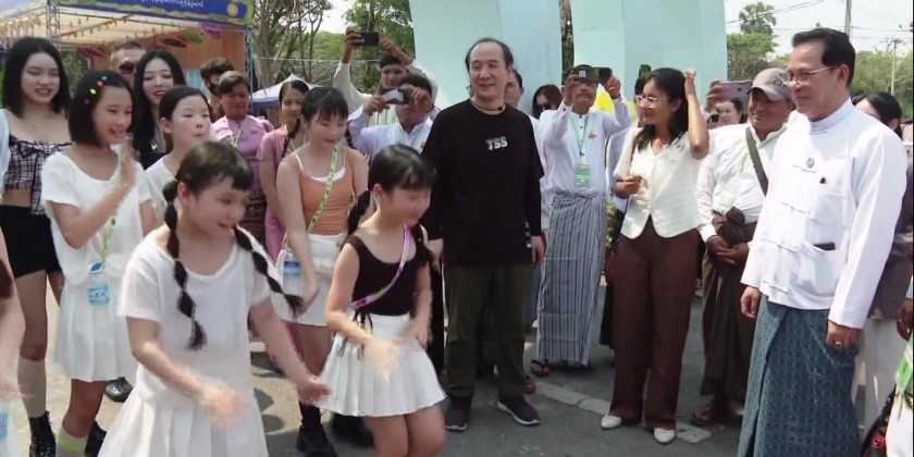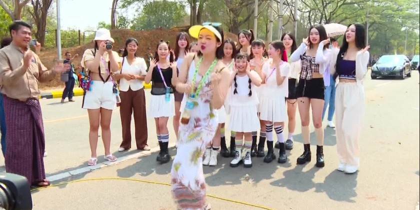 First, the Union Minister viewed the rehearsals of opening Nay Pyi Taw Thingyan Splash Walk Arch Gate systematically by cutting ribbon and the dancing rehearsal with Thangyan Moe song of chorus dance groups represented ministries.Next, the Union Minister was given respect by K-pop singers Rejen,Henny, and7 Kids Dream Group,Astel Dance Group and DJ-Saemi to present Korean K-pop songs and dances in Nay Pyi Taw Walking Thingyan for the bilateral cultural exchange and entertainment for the people during 1385 Myanmar Traditional New Year Maha Thingyan Water Festival and participated in the rehearsal chorus dance happily together with the chorus dance groups.